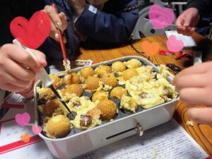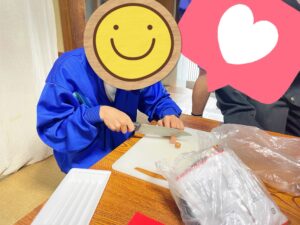 今日はおやつ作りでミニアメリカンドックを作っています。