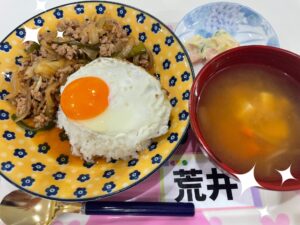 今日のお昼ご飯は、ガパオライス 目玉焼き付きでした♪